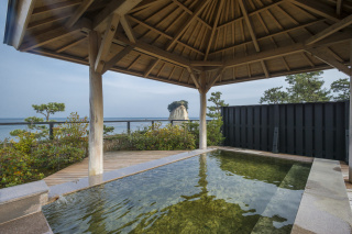 能登の旬の食材を使った料理と、間近に望める奥能登の景勝地「見附島」を眺めながら入る温泉は格別です。温泉は、ストーブ式サウナと水風呂付きの絶景露天風呂「弘法の湯」です。露天風呂は男女日替りです。泉質はナトリウム・塩化物・炭酸水素塩泉で、神経痛やリウマチ、冷え性などに効果があると言われています。