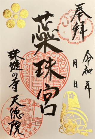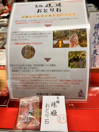 そのご利益を参拝者ご自身で受け取りいただく「おとり石」、金沢の名産である金箔で珠姫と前田家の家紋をあしらった「珠姫金箔御朱印」など