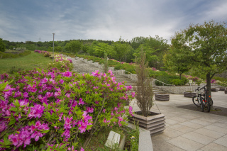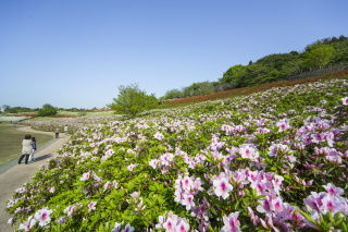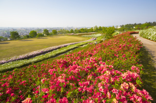 標高差83mの丘陵地に広がり、金沢市街地と日本海までを見渡せる眺望が自慢の公園です。花木にも恵まれ、特に約13,000株のツツジが咲き誇る様は圧巻です。他にも桜、梅、つつじ、あじさい、紅葉、はぎ、椿などが咲き、季節の移ろいを感じることが出来ます。広い空と豊かな自然に囲まれて、ピクニックや散策を楽しんでください。