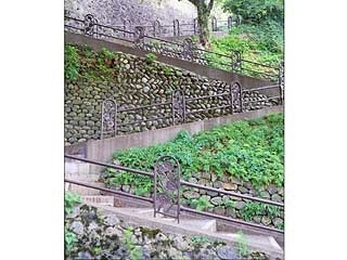 「W」の文字を描くようにジグザグになった階段状の坂道で、室生犀星のお気に入りの散歩道だったという場所です。藩政時代には、坂の上に石工の職人町があったことから「石伐坂」の名が付いたようです。