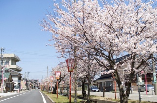 高松は古くから宿場町として発展し、今なおその名残りをとどめる桜並木が残っています。古木ながら春には爛漫(らんまん)の花を咲かせ、「桜まつり」が開催されます。まつりでは、ぼんぼりに色どられた桜が道行く人々の心を和ませます。300メートルの間に約70本の桜が植えられています。