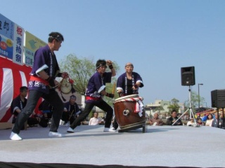 以来、雨乞いの太鼓が「豊年太鼓」と呼ばれ、今も打ち鳴らされています。細かく打つ「小ばい」はしとしとと降る小雨の音を表し、大きく打ち鳴らす「大ばい」は豪雨雷鳴を表現しています。鉦(しょう)の甲高い音は、稲妻を表しています。