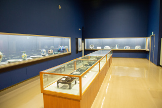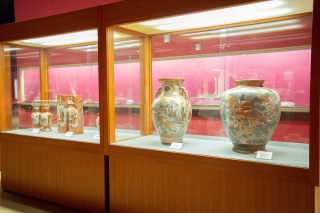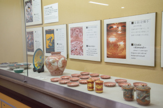 「九谷五彩」の5つの色である紺青・朱赤・紫・緑・黄の各色壁をもつ5つの展示室で構成されており、草創期から現代までの作品と九谷焼の歴史を紹介しています。