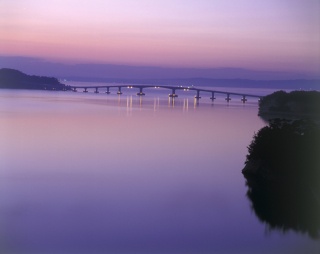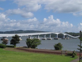 能登島と七尾市石崎町を結ぶ、全長1,050メートルの石川県で一番長い橋です。