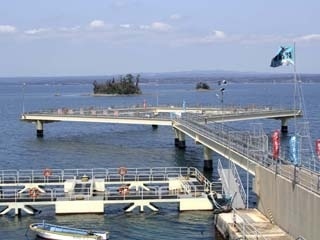 穏やかな七尾北湾に位置しています。沖に向かって延びた桟橋の上から、海釣りを楽しむことができる施設です。貸し竿や釣り餌も販売しており、初心者でも気軽にチャレンジできます。