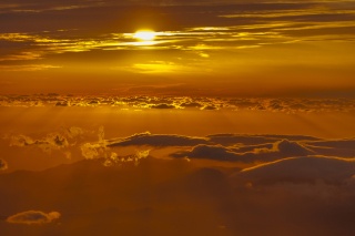 • 夕日に照らされる雲海は神秘的。
