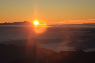 • 頂上から拝むご来光。