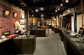 茶屋の風情が残る店内には,箔座オリジナルの純金プラチナ箔をはじめとする金箔を生かした器・アクセサリー・バッグなどの品々が多数そろっています。また,館内店舗奥にある、純金プラチナ箔と24Kの純金箔で仕上げた「黄金の蔵」は必見です。