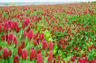 また、4月下旬から5月上旬にかけては、クリムゾンクローバーが満開になります。この花はひまわり村の緑肥として使用されるため、1年で数日しか見ることができません。