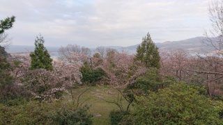 春には桜やツツジが咲き誇り、秋は紅葉が美しい風光明媚な景観の公園です。木立の隙間からは輪島の港や町並みが見え、晴れた日には遠くに七ツ島を望むこともできます。