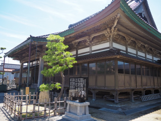 【真宗大谷派】本願寺第五世綽如上人の曽孫で越中井波の瑞泉寺の第四世住職・蓮欽が文明元年(1469)富山県砺波郡山田の荘に寺を建立したのが始まりです。開基・蓮欽の室は蓮如上人の娘・了如禅尼、本寺第三世・賢春の室・英俊(えいしゅん)は蓮如上人の孫にあたり、蓮如上人の分骨を帯して入寺されたので、この寺には蓮如上人の御廟が設けられています。慶長7年(1602)第四世賢恵の時に本願寺第十一世顕如上人より本龍寺の寺号を賜り、この地に移転しました。当時の本堂は江戸時代に火災にあい焼失しましたが、その後寛政10年(1798)3月に長浜大通寺より入寺された第十一世乗恵の時に再建され、幾星霜を経て現在に至っております。境内には「海の百万石」と呼ばれた銭屋五兵衛の墓、その銭屋五兵衛にあこがれ貿易商として一代で大商社を築いた安宅弥吉の墓、松尾芭蕉が「奥の細道」の途中金石に立ち寄った時に詠んだ「小鯛さす柳すずしや海士が軒」の句碑などがあります。