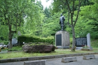 鵜川町の静かな山あいにある広場には、美しく整備された記念碑や明太郎の銅像、バイオ式トイレや駐車場も整備されています。