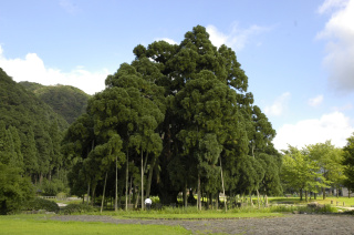 広場の後方には国指定天然記念物の「御仏供(おぼけ)スギ」があり、必見です!