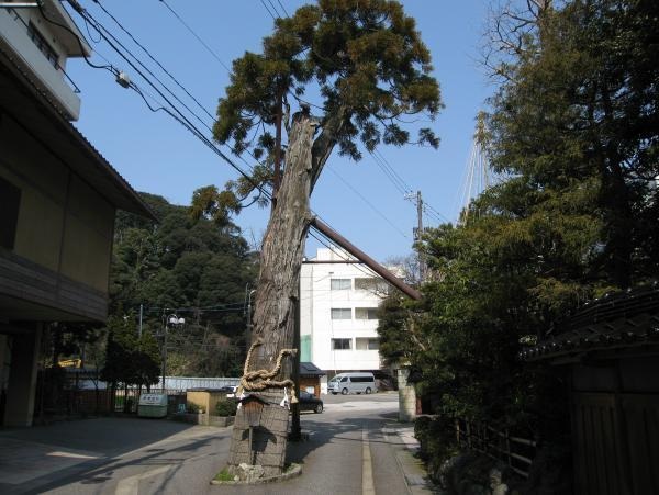 - 温泉街の中央、法師旅館の前、道路の中央に20度傾斜して立っている。加賀百万石三代藩主、前田利常侯が隠居して小松城主となり、那谷寺参詣の折粟津に立ち寄り、お手植えになったと伝えられている。利常侯は当時は中納言となっており、江戸上屋敷の門が黄色であったた…