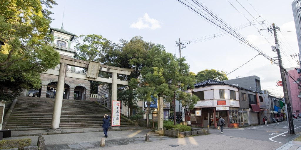 加賀藩祖・前田利家公と正室おまつの方を祀る尾山神社。そのお膝元にある「尾山神社前商店街」は開設70余年の歴史ある商店街です。戦後間もなく、外地からの引揚者のために尾山神社の外苑であった地を借り上げ、木造長屋4棟が建てられたのが始まりです。当時は約100軒のうち、飲食店が6割を占め、庶民的で親しみやすい雰囲気を醸し出した一方、夜はネオン街として活気に満ち溢れたそうです。商店街には生活に特化した専門店を中心に、今もなお残る長屋や昭和の風情が残るレトロな外観の建物が立ち並んでいます。一方で、新しい感性が光る宿泊施設や飲食店なども続々と登場。金沢の今昔が溶け合い独自の魅力を発信するエリアです。
