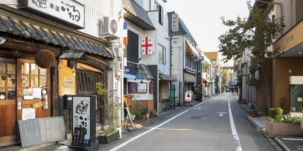 火事の多かった江戸時代、火除地(ひよけち)とするために植えられた柿の木が町名の由来。通りには歴史を感じさせる二本の用水が流れており、和洋中のほか、イタリア、スペイン、ジョージア、タイなどの料理店が、異国情緒溢れる雰囲気を醸し出しています。老舗と新店が混在し、親方から若手までが助け合う、人情味溢れる商店街です。また、「柿まつり」や伝統芸能「柿木太鼓」など、地域一体で行われるイベントも多く、地元客観光客問わず人気だそう。『金沢21世紀美術館』と連携しており、来館者が食事や買い物で気軽に足を運べるよう、おもてなしにも力を入れています。行き交う人が皆、優しくて温かい、懐かしい心地良さを感じられるエリアです。