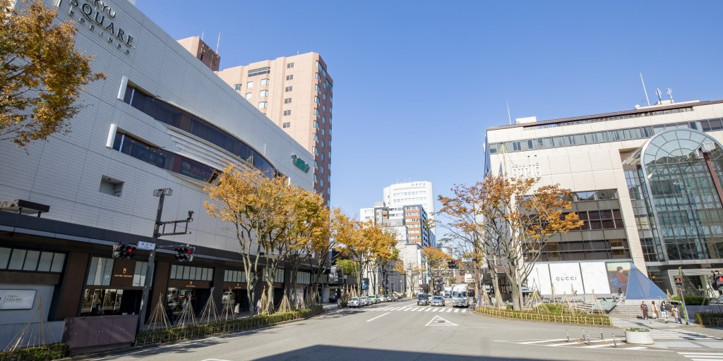 江戸時代にはすでに商店街があった香林坊。明治時代、近くに「旧制第四高等学校」が開校したことから、学生向けのカフェや映画館などが集積し、北陸最大の繁華街として栄えました。今では老舗百貨店の『香林坊大和』や、ファッションブランドが集う『香林坊東急スクエア』、『香林坊アトリオ』などの大型商業施設の他、路面店として海外有名ブランド店や大手セレクトショップも軒を連ねる、日本海側有数のショッピングゾーンとなっています。兼六園や金沢城公園、金沢21 世紀美術館などの名所からも近いため、県内外から多くの観光客が訪れます。一年を通じて様々なイベントも催され、金沢の街の賑わいに欠かせない商店街の一つです。